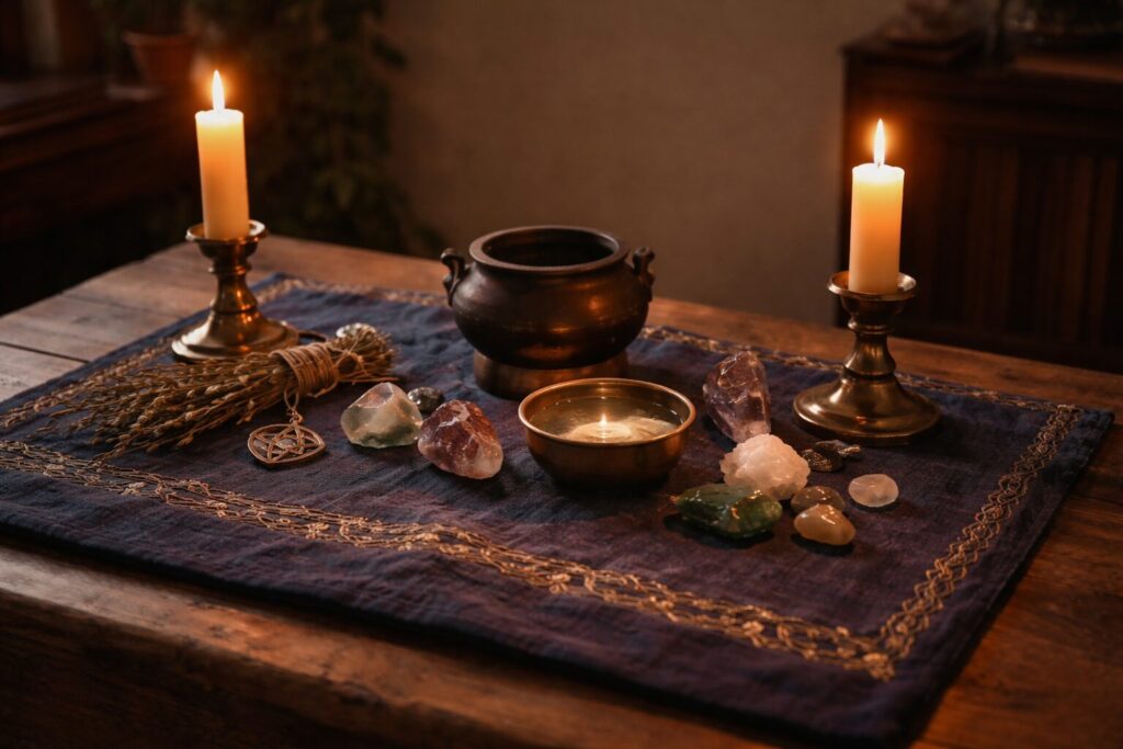 Altars shift roles over time. Some are devotional—maintained for presence and relationship. Some are working altars—designed for spellwork, where tools move and layouts change. Many become blended spaces that hold both reverence and function.