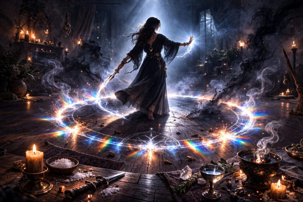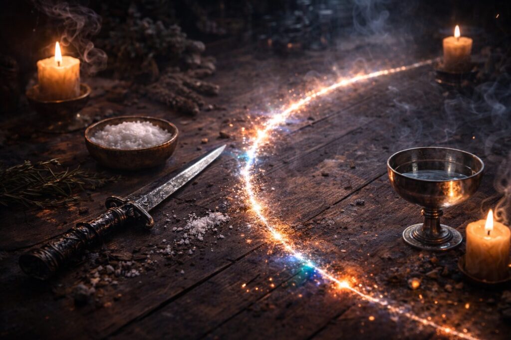 Ceremonial banishing adds formal sequence. It typically begins by establishing sacred space, then naming what must depart, then issuing dismissal, and finally sealing the boundary. Done well, the structure keeps you steady—especially when the influence is persistent or “larger” than your usual noise floor.