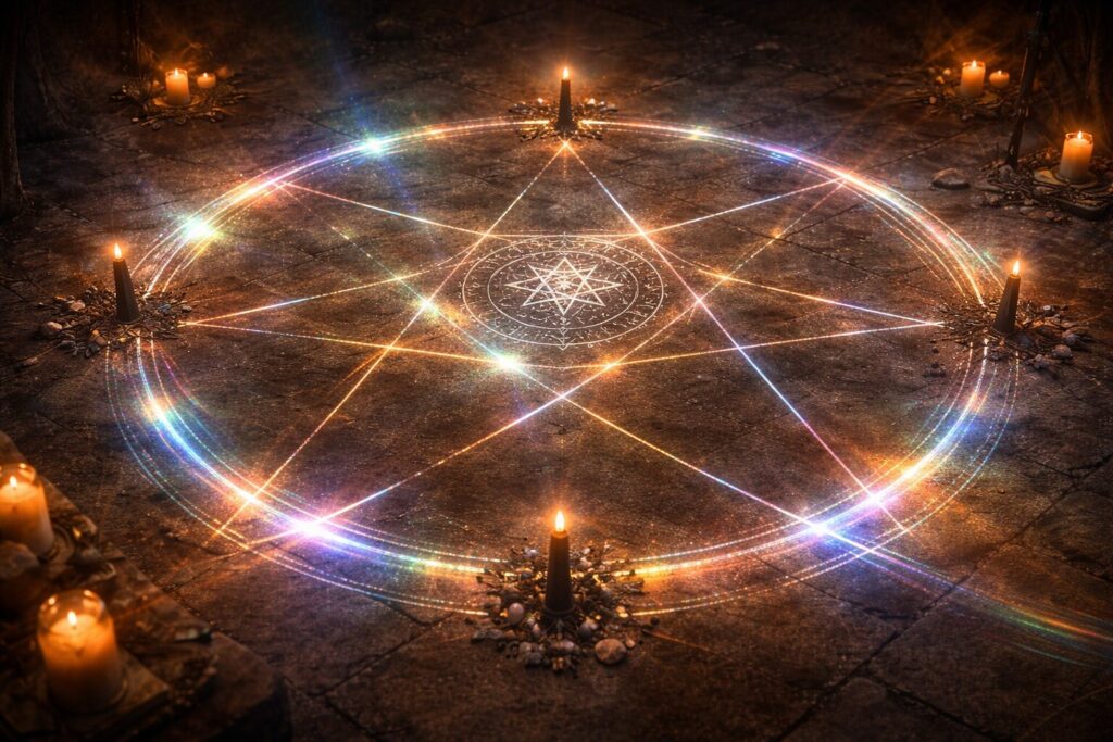 In ceremonial contexts, binding is often a safety protocol: it defines terms of contact so a presence cannot attach, interfere, or refuse dismissal. The goal is governance—not cruelty. Begin by establishing sacred space and stating the terms aloud, as if reading a contract into being.