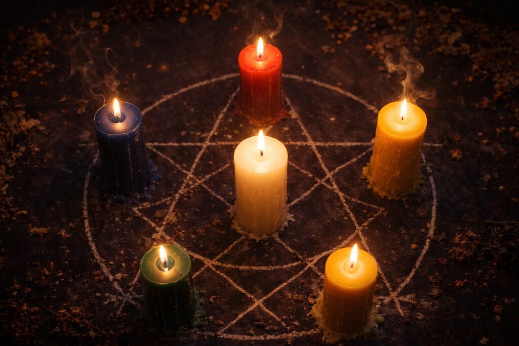 Candles can anchor the circle by representing the quarters, the elements, or the presence of Spirit. This is not only symbolic— it creates a stable map for the working. Each flame becomes a “standing point” in the field that helps hold ritual structure.