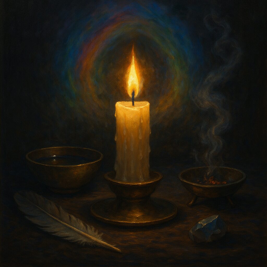 Though ruled by Fire, the candle unites all four elements: wax as Earth, the melting as Water, smoke as Air, and flame as Fire. In a single act of burning, it becomes a perfect emblem of elemental harmony—the material consumed to feed the immaterial, a union of body and breath, matter and spirit.