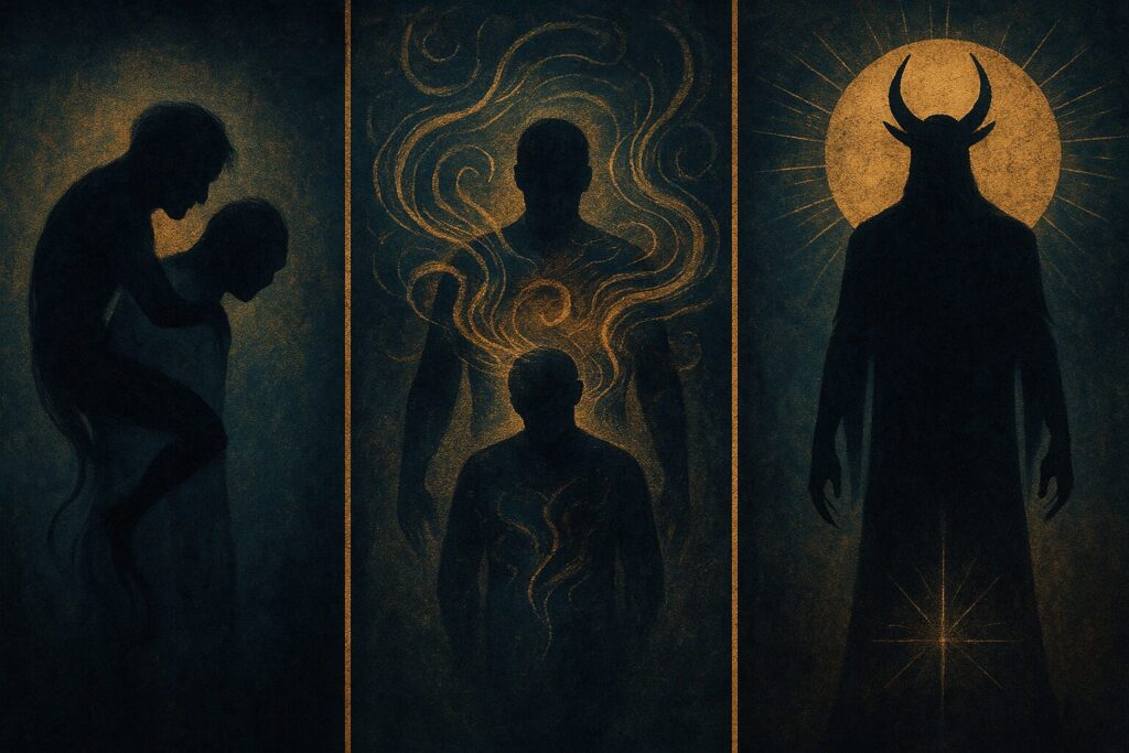 Psychology and parapsychology offer further insight. In Jungian terms, what is called a demon often corresponds to the shadow self—aspects of the self repressed, feared, or denied until they appear projected outward. Energetically, this projection becomes form. In the language of magic, emotion and focus feed thoughtforms; what we resist, we charge. Parapsychology reframes such phenomena as psychic residues or “egregores”—fields of emotion taking on temporary life. A witch understands these not as evil in themselves but as psychic feedback loops: fear giving birth to more fear. Thus the work is not always exorcism, but integration—transmuting the energy through understanding and will.