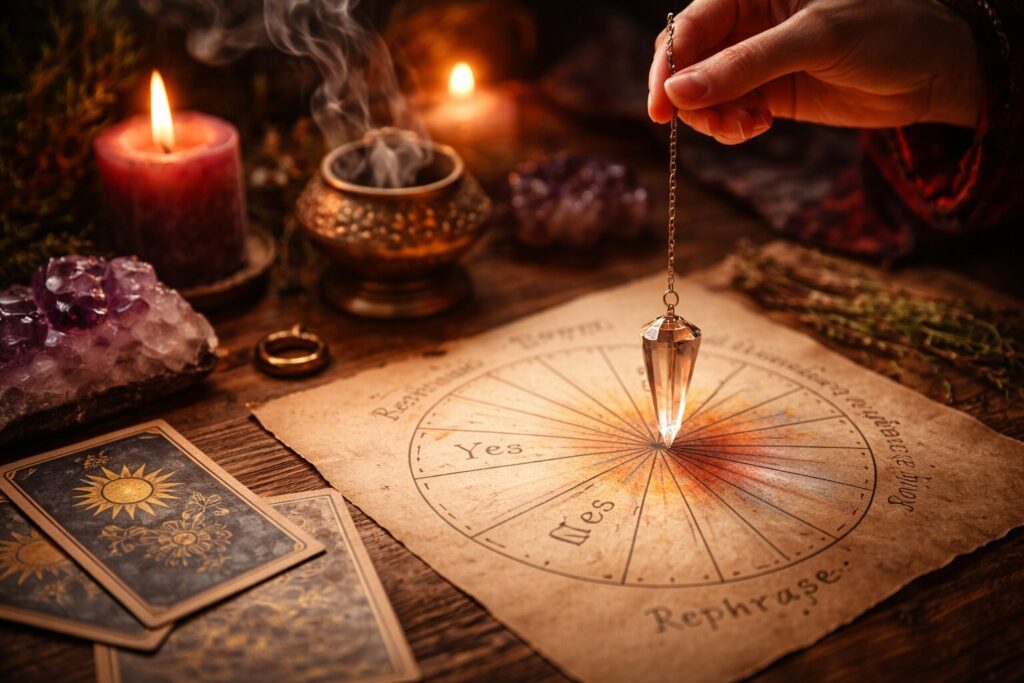 | Pendulum divination | European occult revival; healing traditions | Weighted charm on chain | Ideomotor micro-movement | Yes/no inquiry, energy testing | Bias and overreliance concerns |