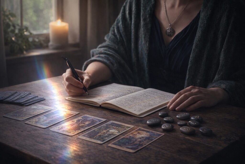 Close your tool deliberately. Say, “This reading is complete.” Clear the space. Do not chase the answer by asking again unless something real has changed.