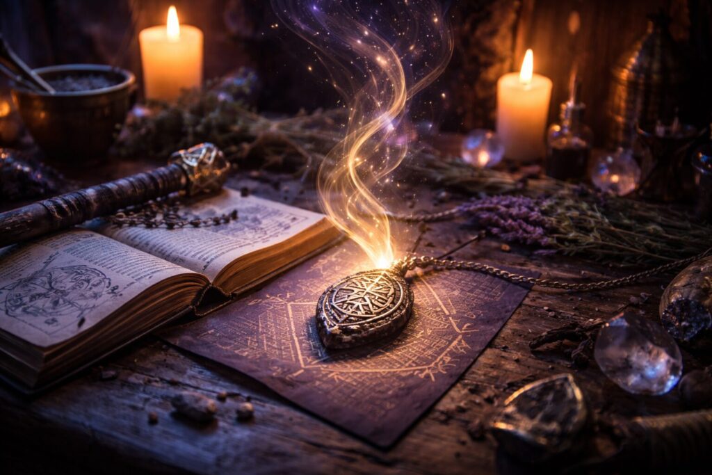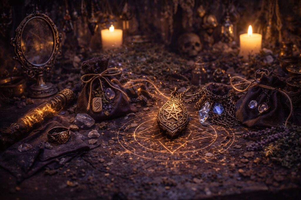 One of the most familiar forms of enchantment is the creation of protective jewelry, amulets, doorway wards, charm bags, or ritual tools meant to guard the practitioner or the home. These are not simply “charged” with force, but instructed to repel, shield, steady, or absorb according to their purpose. Such objects are especially effective when regularly cleansed and renewed, because protection is a living current rather than a static wall.