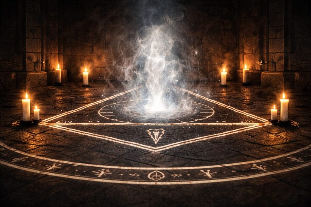 The outer form changes, but the principles remain constant: the space is prepared, the contact is named, the threshold is held, the purpose is clear, and the being is released properly at the end. Evocation differs by type of presence and ritual language, but never by responsibility.