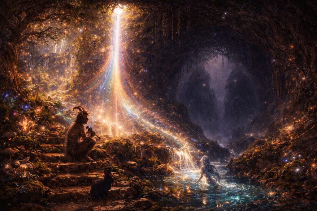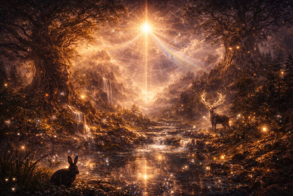 Small gods arise from the same creative field as all other divine forms, but they do not expand into broad cultural recognition or large mythic identity. Instead, they remain rooted in place, in pattern, and in relationship. They are the presence in a particular river, the spirit of a hill, the awareness that gathers in a home over years of living, memory, and care. They may be tied to a family line, a stretch of land, a doorway, a grove, or a repeated act of attention.
