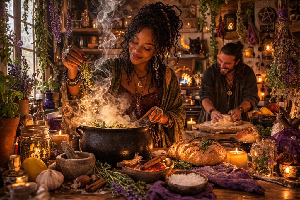 For many witches, kitchen craft becomes the gateway to deeper practice. It requires no rare tools or arcane libraries, only attention to what is already present. Yet it can also remain a lifelong path of its own, where every recipe becomes spellwork and every shared meal becomes communion. (You can explore this current further in our work on Hearth and Hedge Magic.)