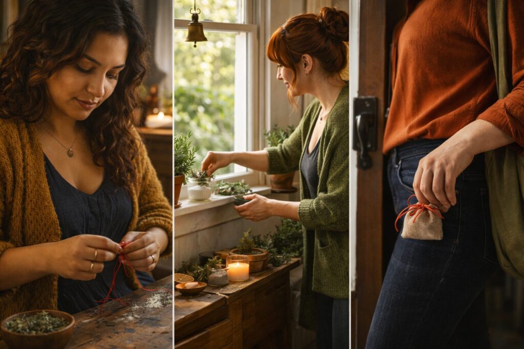 Tucking a small herb charm into a drawer, wardrobe, or pillow to encourage restful sleep, household peace, love, or subtle protection through daily contact.