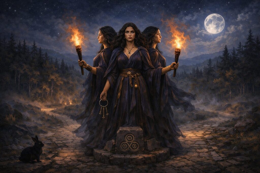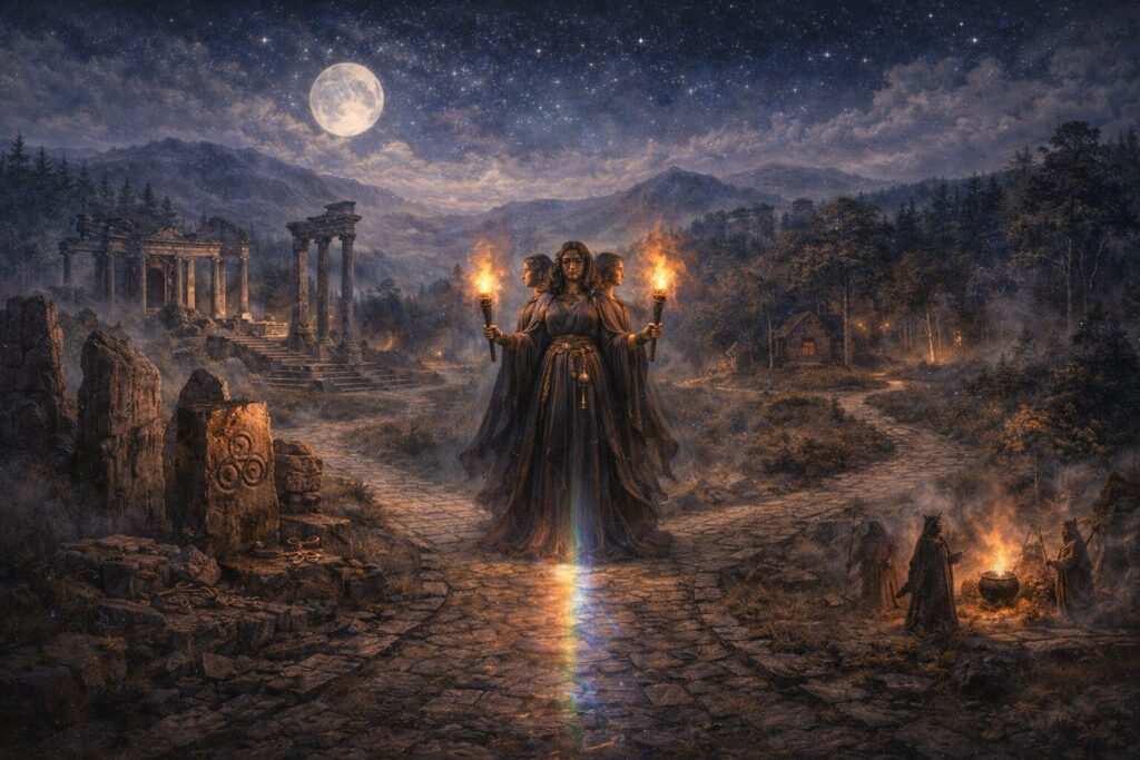 Hekate’s image has never remained still. As she moved through ancient religion, magical practice, medieval imagination, and modern witchcraft, her expression changed—but the current beneath those changes remained recognizable. To follow Hekate through time is to watch an ancient goddess translated through different ages without losing the threshold power at her core.