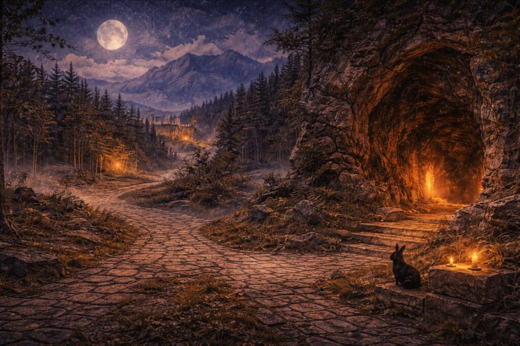 The most characteristic places of Hekate share a common quality: they exist between conditions. A crossroads lies between journeys. A cave mouth stands between light and darkness. A graveyard rests between memory and presence, where the living remember and the dead remain spiritually near. Forest paths, shoreline boundaries, mountain passes, and old gates carry similar atmospheres. Each of these locations marks a point where one world brushes another.