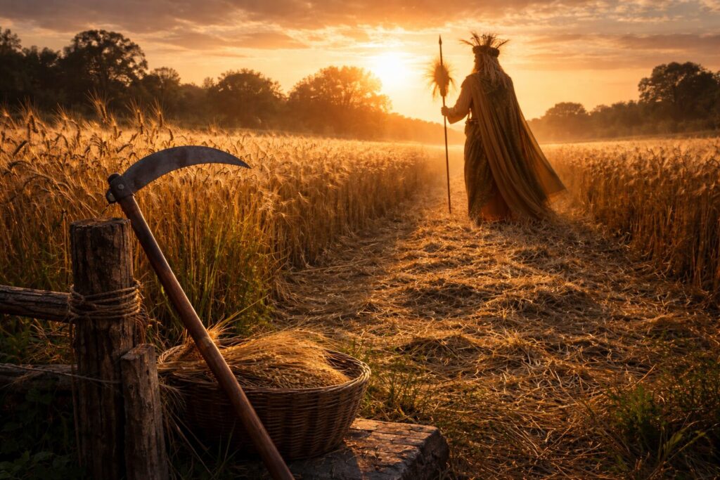 Across Indo-European traditions, the Harvest King represents the moment when vitality reaches its height and must begin its descent. His power is real β and temporary.