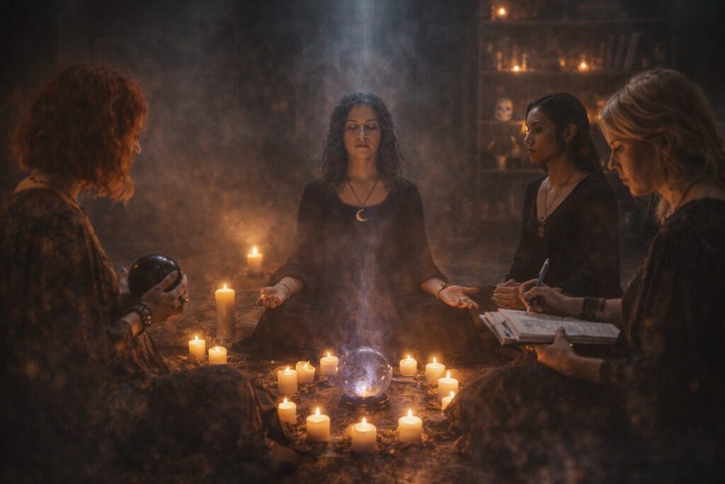 This is why coven work has long been associated with stronger manifestations, more pronounced atmosphere, and more complex spirit response. A circle can function like an amplifier. One person receives, another grounds, another records, another watches for pattern, another stabilizes the room. The work becomes collaborative rather than merely individual.
