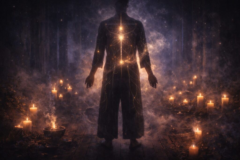 Threshold states are cultivated deliberately—darkness, rhythm, repetition, sensory narrowing. This often overlaps with inner work like shadow work.