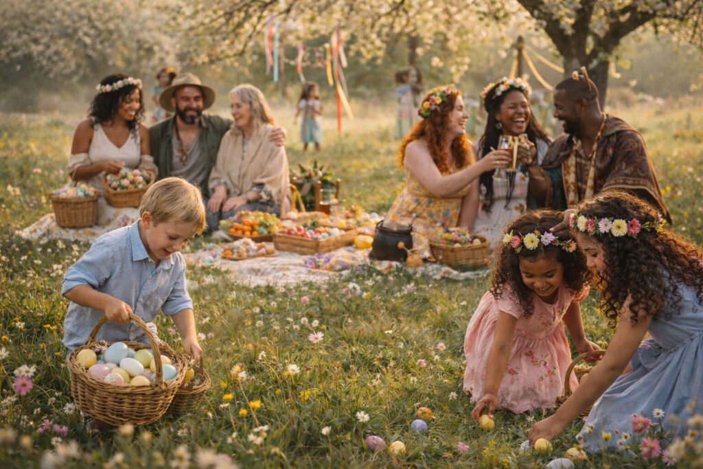 Ostara and Easter share seasonal timing and some surface symbolism because cultures layer meaning onto the same turning points. In practice, many families carry both—religious observance, cultural tradition, and Pagan seasonal celebration—sometimes in separate forms, sometimes blended.
