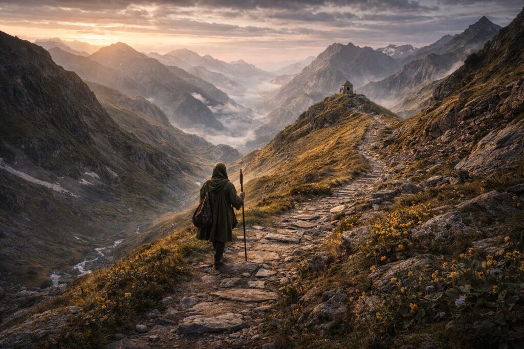 To undertake pilgrimage is to enter into a spell that unfolds step by step. The body moves through terrain; the mind loosens from routine; the intention ripens through repetition. The journey is not incidental to the destination—it is part of the working. Walking, traveling, preparing, fasting, studying, carrying a token or vow: these are components of enchantment. By the time the pilgrim reaches the site, they are not the same person who began.