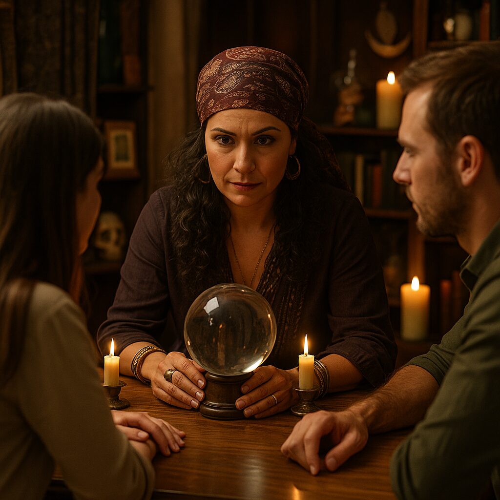 - Holding a crystal ball in dim light, softening the gaze until images rise like dream fragments.