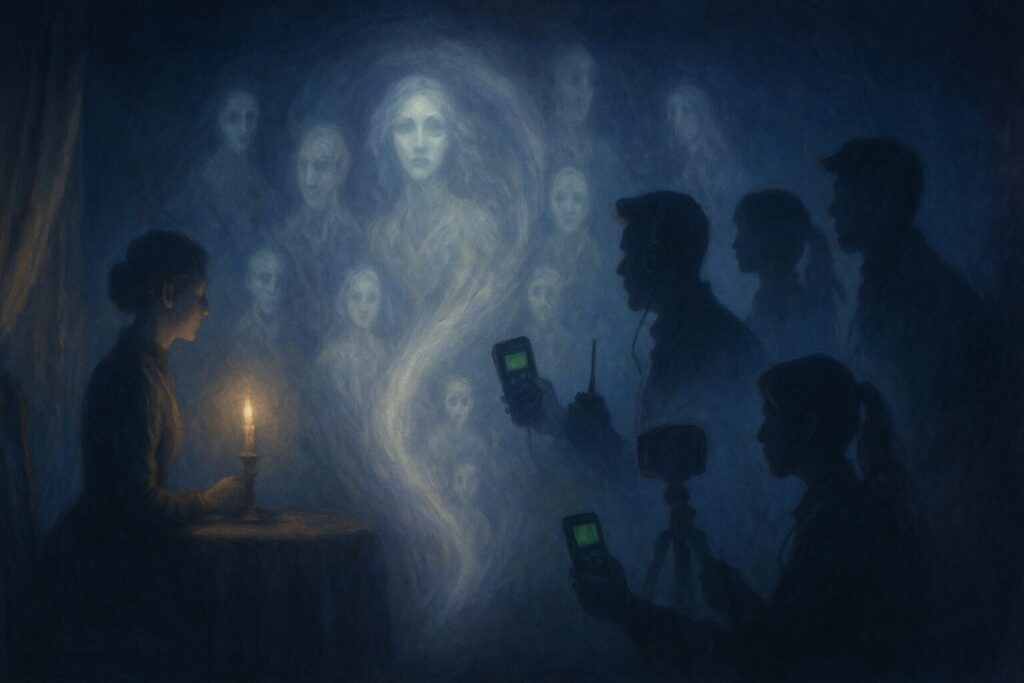 Ghost hunters with EMF meters now trace the same hope once held by candlelight; paranormal investigators play their part in the long lineage of those who dared to ask the invisible to speak. Television shows like Ghost Hunters, Medium, and The Dead Files, or films such as The Sixth Sense and The Others, all revisit the séance in modern form. While some approach it with drama or irony, others awaken in viewers a deeper curiosity: what if the old tables were right all along? Every camera pointed into the dark is a descendant of those first trembling raps. And for many who begin with ghost-hunting or curiosity about the paranormal, the path widens—toward meditation, divination, and the search for spirit in daily life.