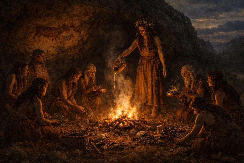 Grave goods and cave light hint at healers who spoke with animals and ancestors. The first warders of the fire.