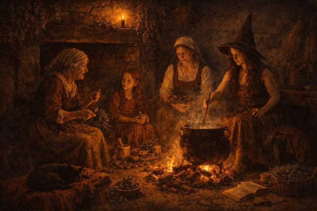 Witchcraft did not survive only in grand rites or named traditions. It endured through repeated acts of practice: spoken, carried, planted, hidden, remembered, and done again.